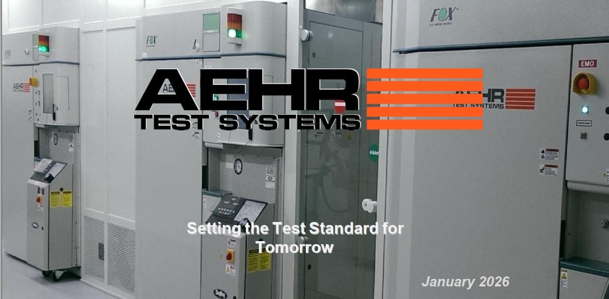 今天的文章是一篇深度分析的下半部分,针对一个小盘(目前市值12亿美元)半导体测试设备公司,AEHR Test Systems, 美股代码就是AEHR。AEHR最近股价走势极强,刚刚在26年4月2日收盘时创出两年内的新高(部分原因是因为其基本面的强势,部分原因则是受到了X上股票大V的关注及推荐,散户热情追涨)。
