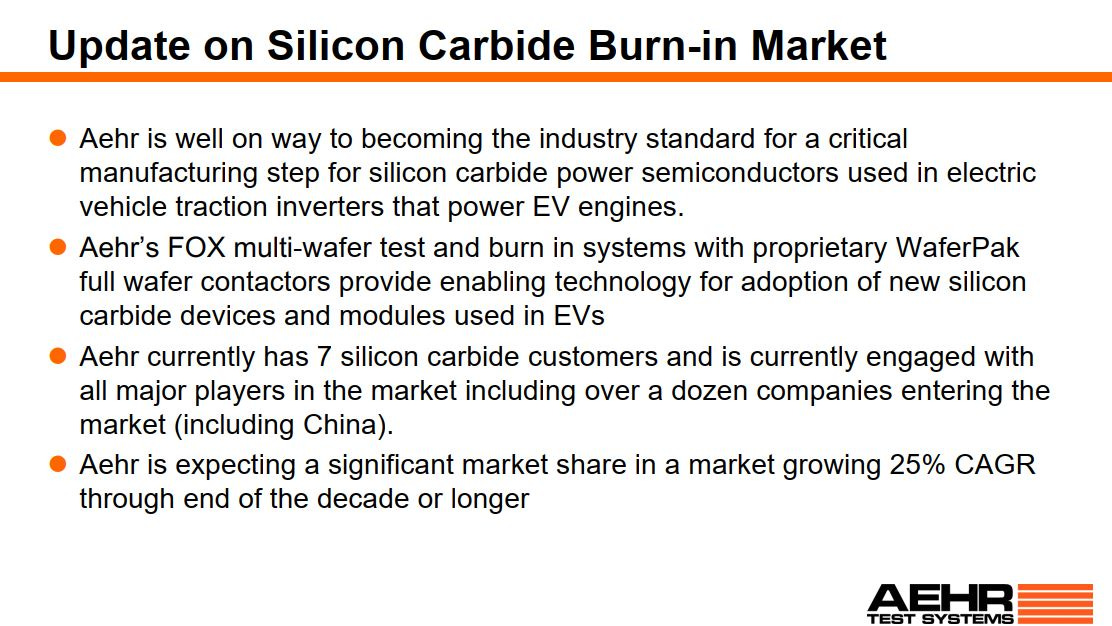 —AEHR的产品在技术上是过硬的,因此当契机来临的时候(比如碳化硅兴起),AEHR确实可以一飞冲天。